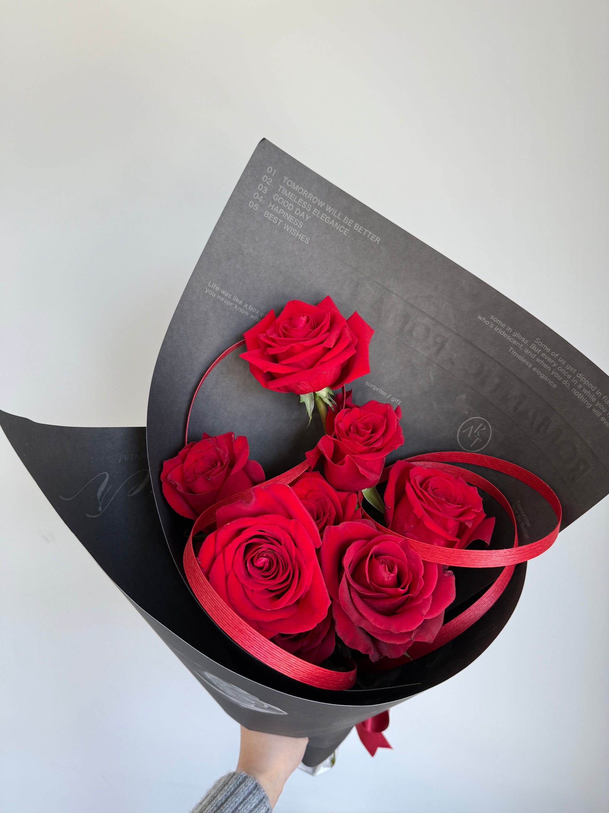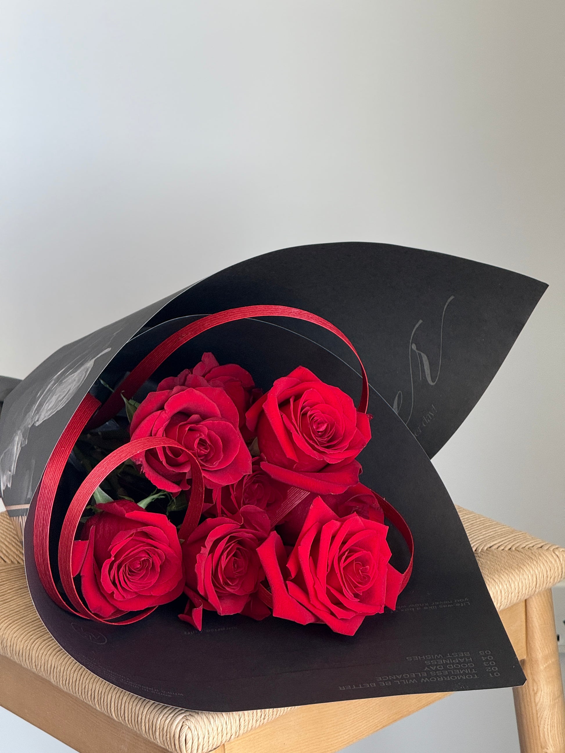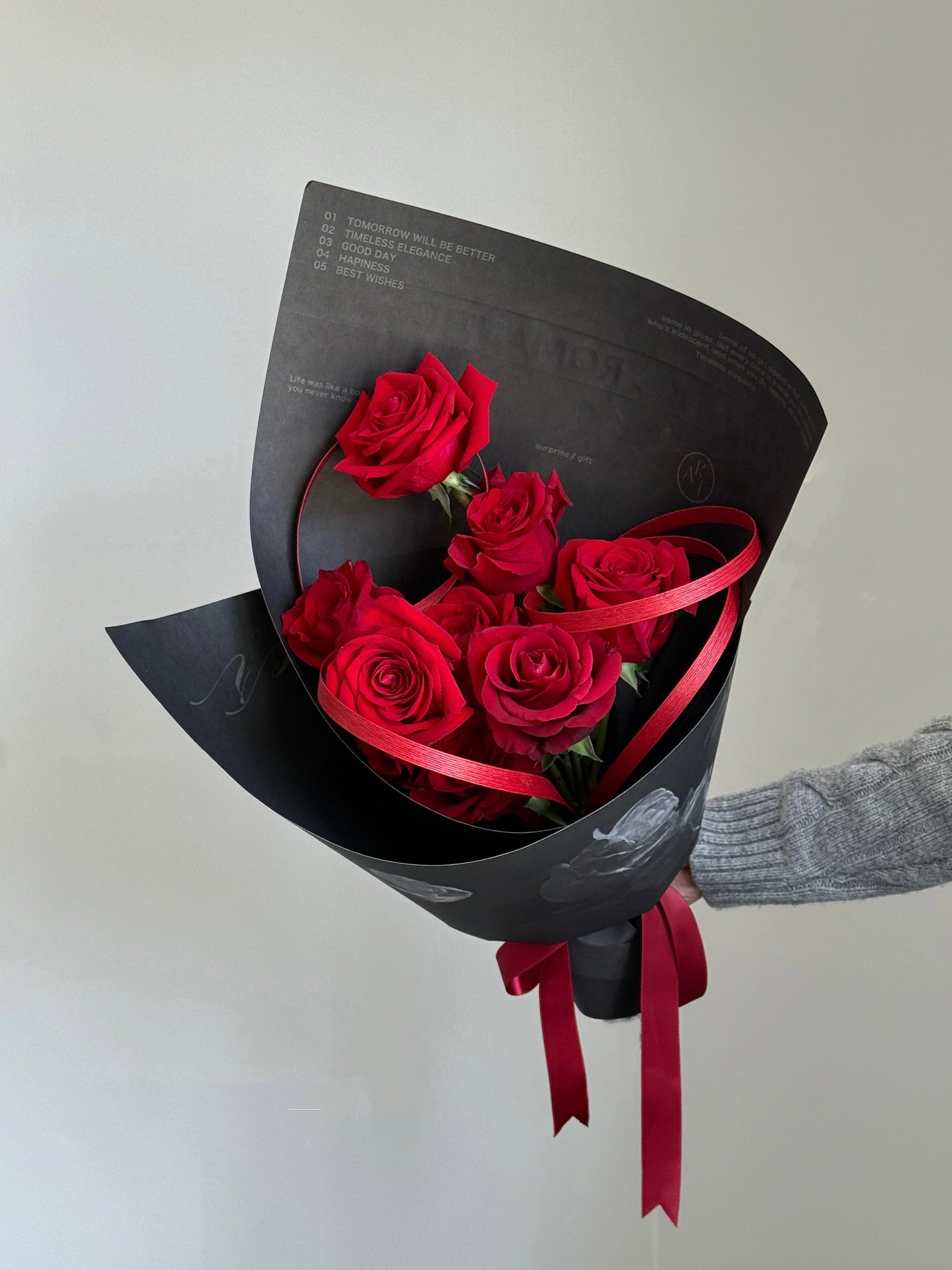 Beautifully arranged with fresh, long-stemmed roses, this bouquet is an elegant and heartfelt gift that never goes out of style. This picture shows 9 roses bouquet.
